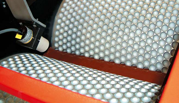 After the tempered chocolate syrup passes through two relatively rotating cooling drums, it quickly solidifies and forms a consistent chocolate lentil strip, but the center of the lentil core has not been completely cooled, so it needs to be further cooled and stabilized through a cooling tunnel. Generally, the length of the cooling tunnel is about 17m. If limited by the site, multiple cooling belts can be used, and the cooling tunnel can be shortened. After cooling, the product enters the rotary tumbling machine, and the connected cores are separated and then sent out into lentil-shaped chocolates, which are then used as sugar-coated chocolate cores. Sugar coating technical requirements and equipment