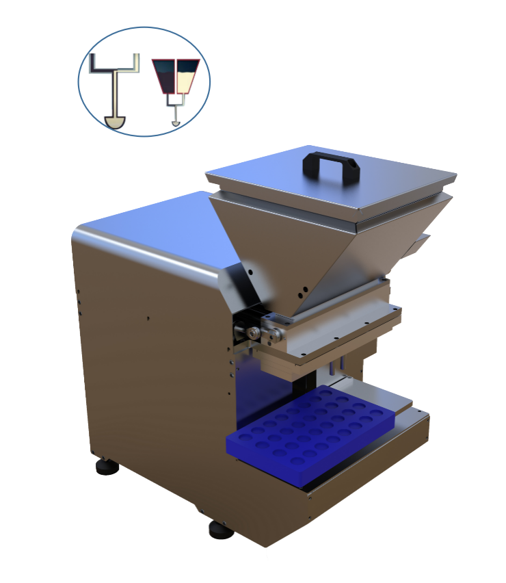 LST-D8 is equipped with double hoppers on the basis of the original table-top chocolate&gummy depositor.It is specially made for one-shot depositing of chocolate or gummy or other candies. This depositor usually works with polycarbonate and silicone moulds.